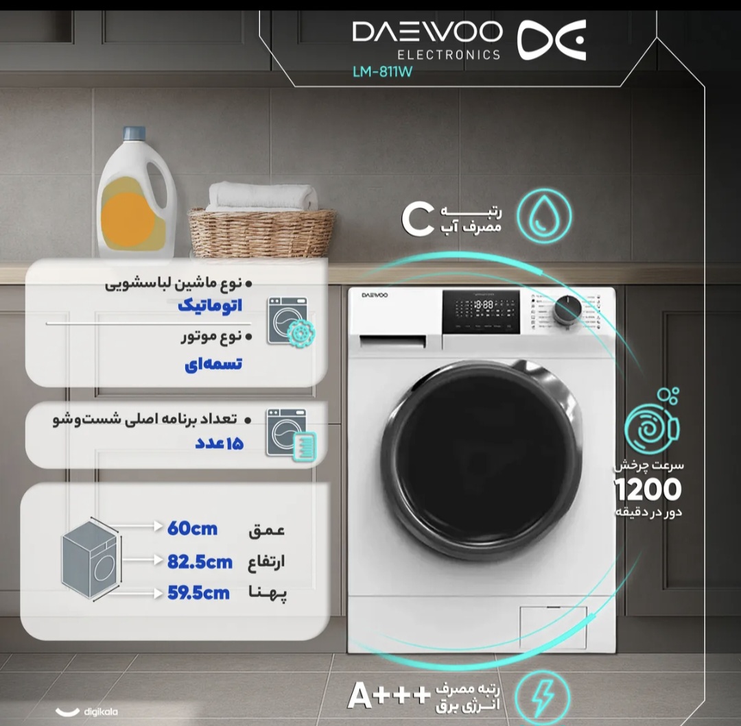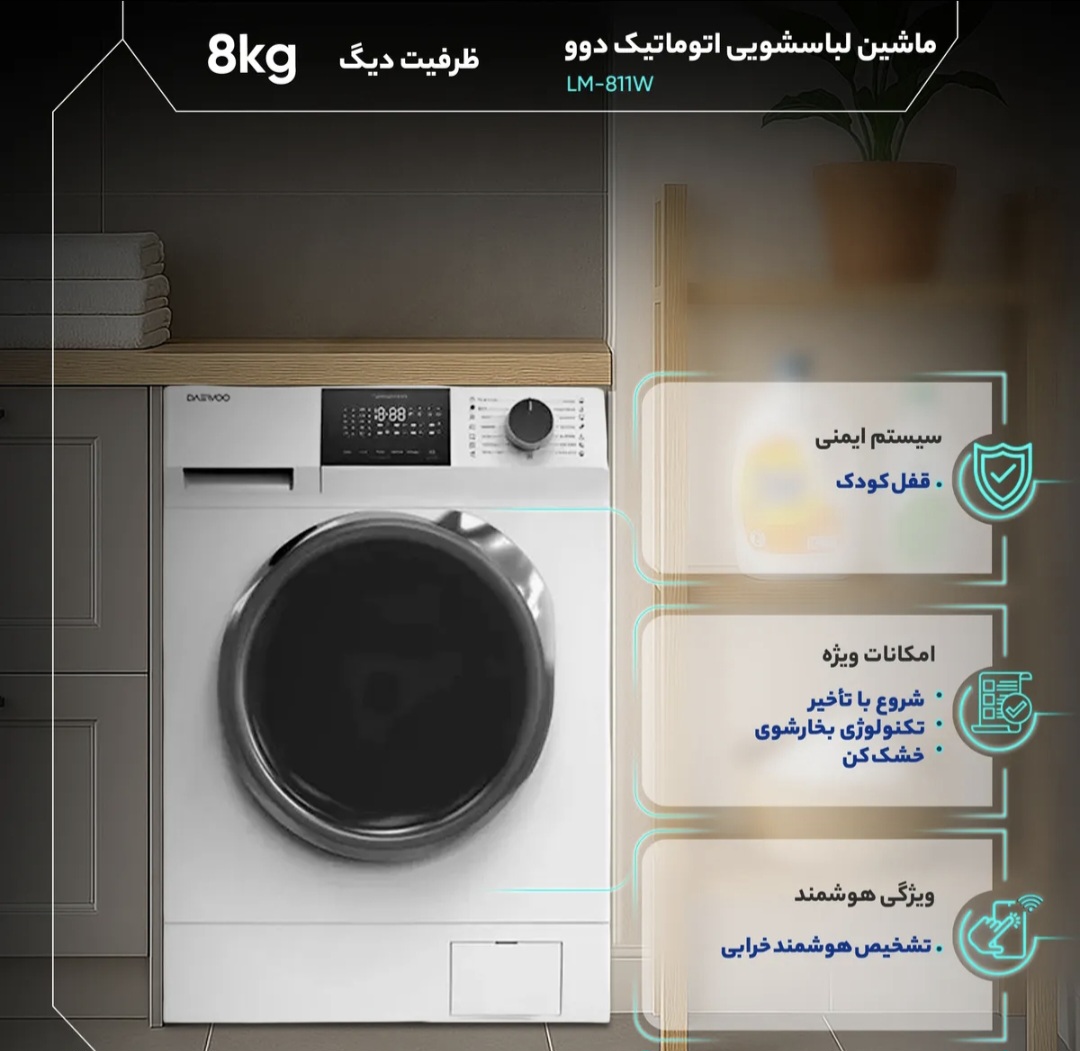 ماشین لباسشویی دوو مدل LM-811 ظرفیت ۸ کیلوگرم