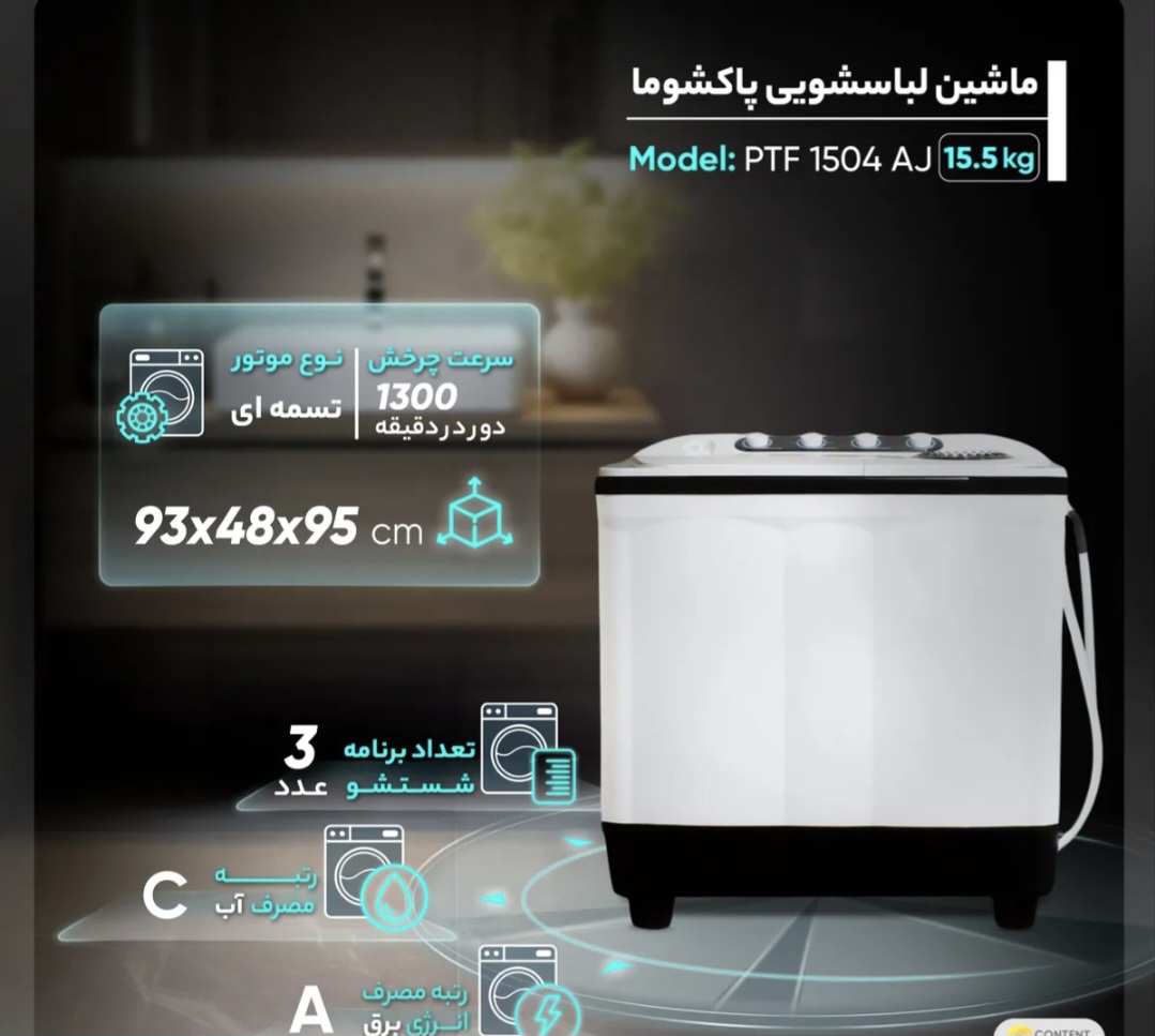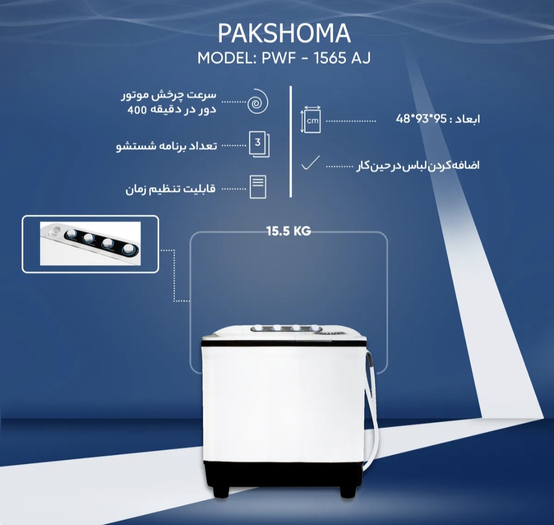 ماشین لباسشویی دوقلو پاکشوما مدل FA15 ظرفیت ۱۵.۵ کیلوگرم